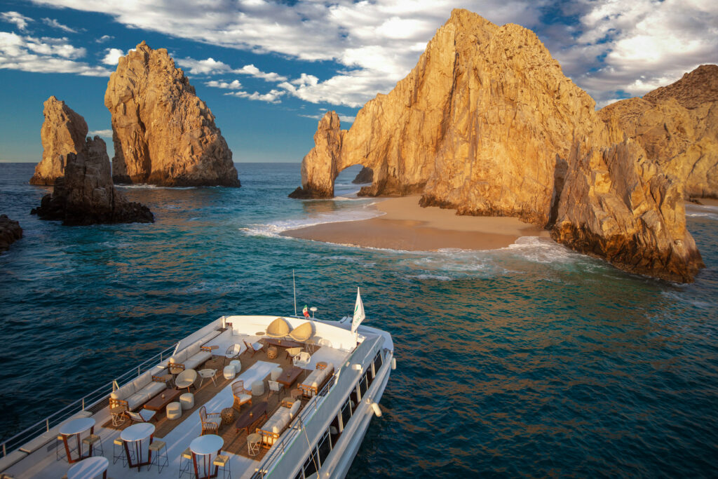 Cruise Cabo, while enjoying a traditional Mexican dinner and open bar. See sites like Lover’s Beach while dancing to a live band